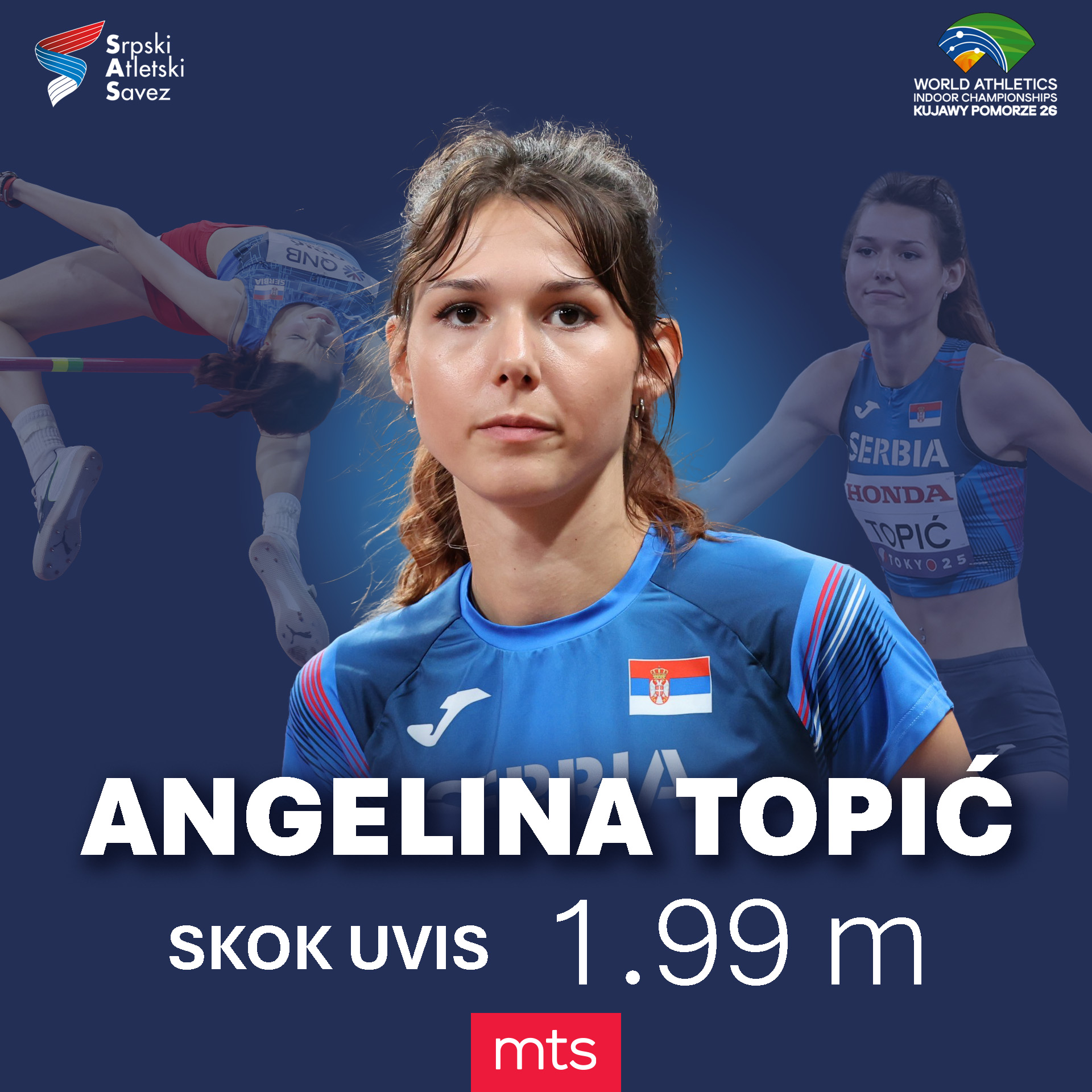 Na Svetskom prvenstvu u dvorani srpska atletika dobila je novu veliku radost – Angelina Topić osvojila je srebrnu medalju u skoku uvis, preskočivši impresivnih 1.99 metara i još jednom potvrdila da se nalazi u samom vrhu svetske elite.