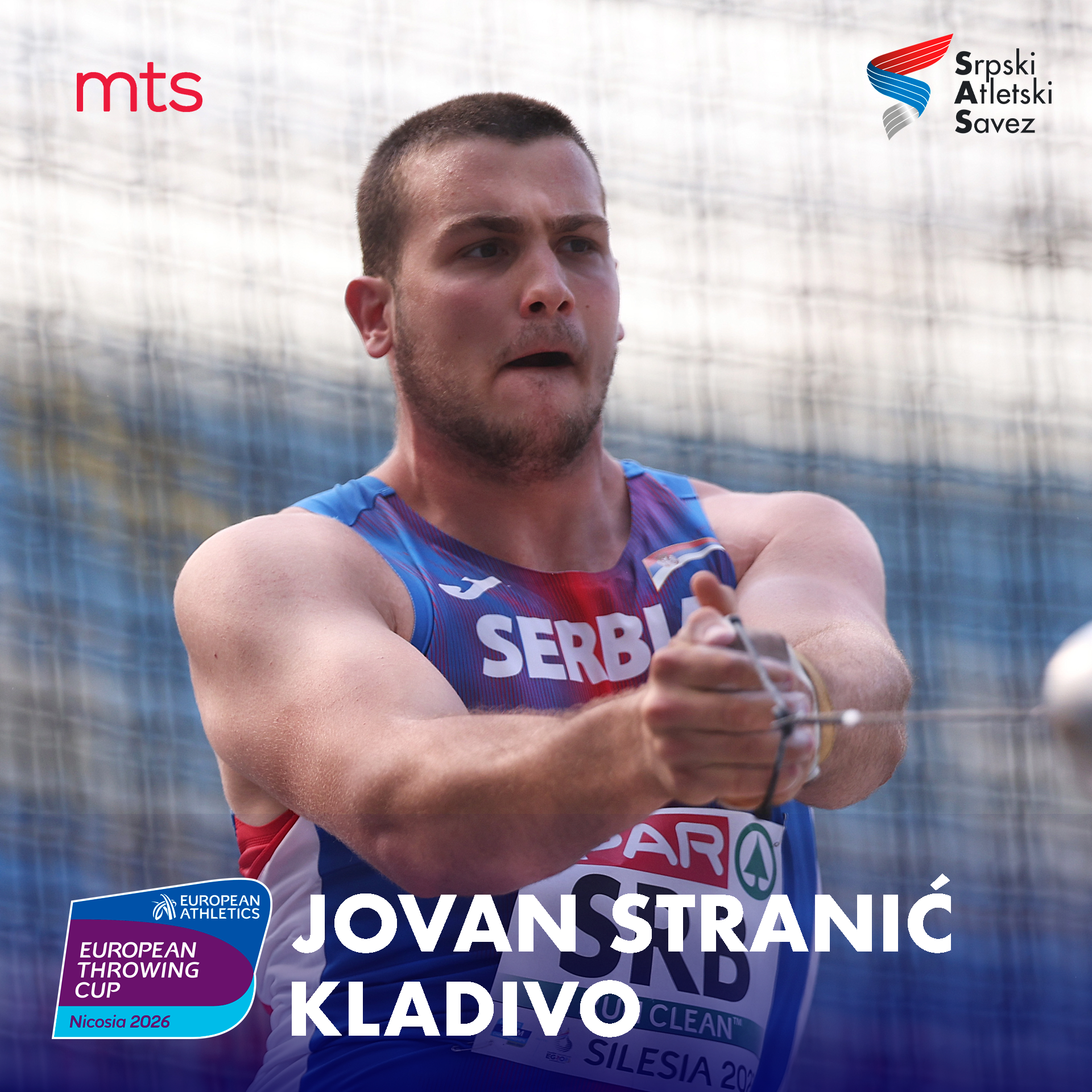 Pored nje, Srbiju će na Kupu Evrope u bacanjima predstavljati i Jovan Stranić u disciplini bacanje kladiva.