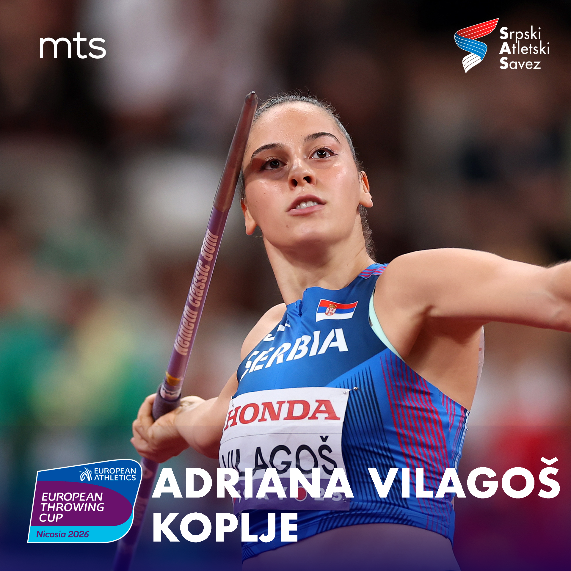 Srpski reprezentativci Adriana Vilagoš u bacanju koplja i Jovan Stranić u bacanju kladiva nastupiće ovog vikenda, 14. i 15. marta, na Kupu Evrope u bacanjima, koji se održava u Nikoziji na Kipru. Ovo takmičenje predstavlja prvi međunarodni izazov u novoj sezoni za naše bacače.